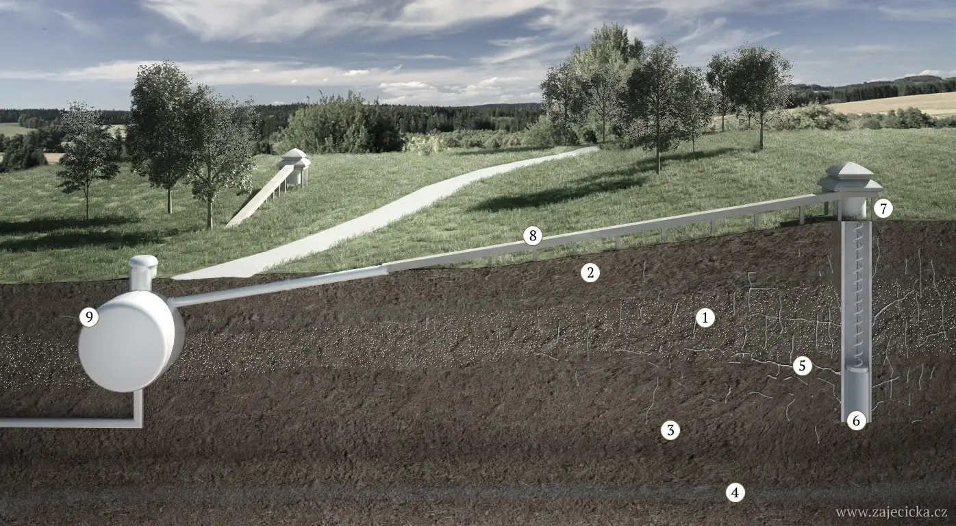 - Gravitační svod do sběrné jímky